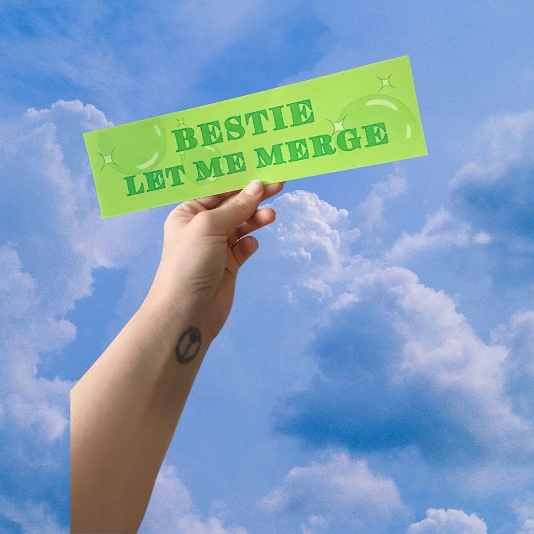 💫🖤Bestie Let Me Merge Bumper Sticker, 10.75" x 3" perfect for your car or anywhere you see fit! Laminated for longevity on premium outdoor vinyl, these will stick and last!🖤💫
