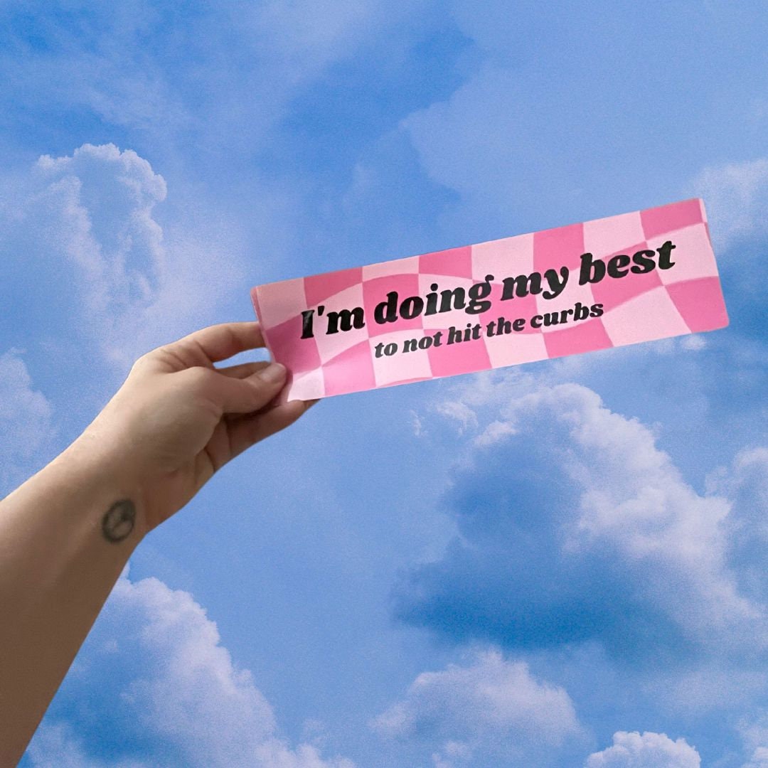 π«π€I'm doing my best (to not hit the curbs) Bumper Sticker, 10.75" x 3" perfect for your car or anywhere you see fit! Laminated for longevity on premium outdoor vinyl, these will stick and last!π€π«
