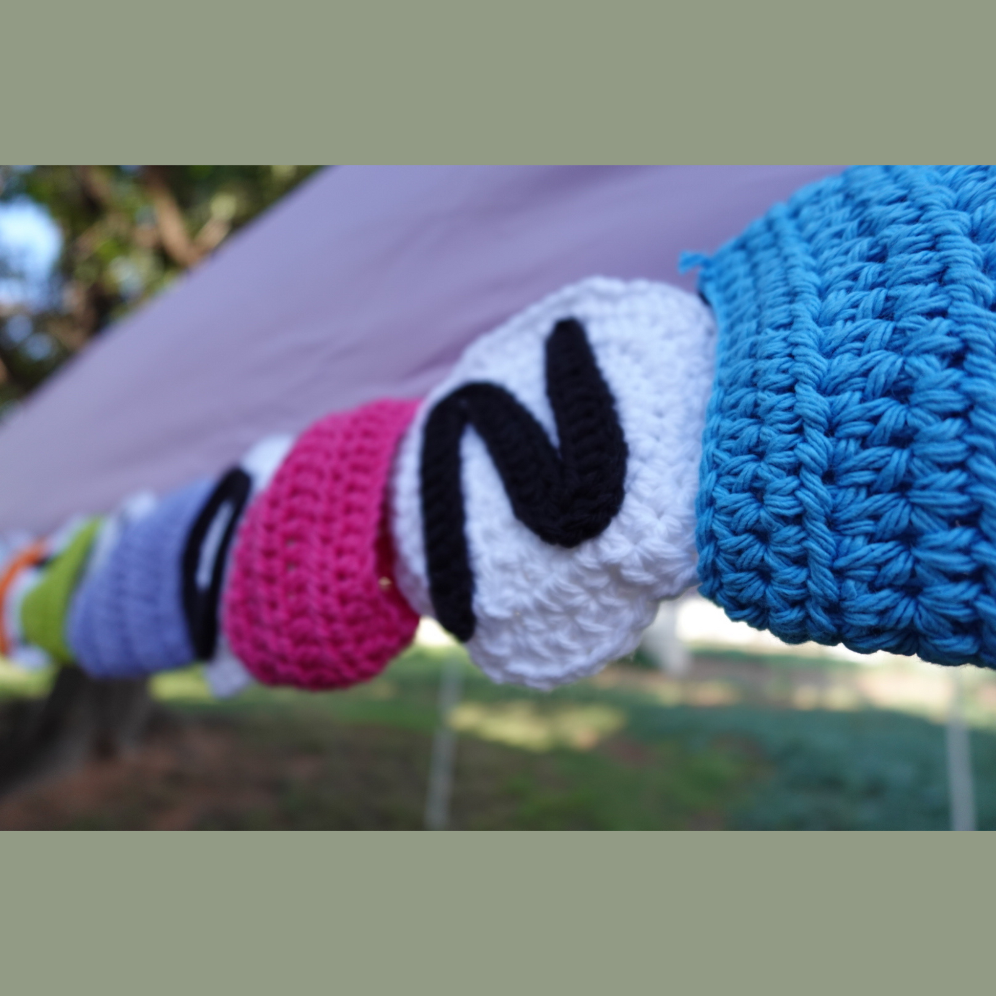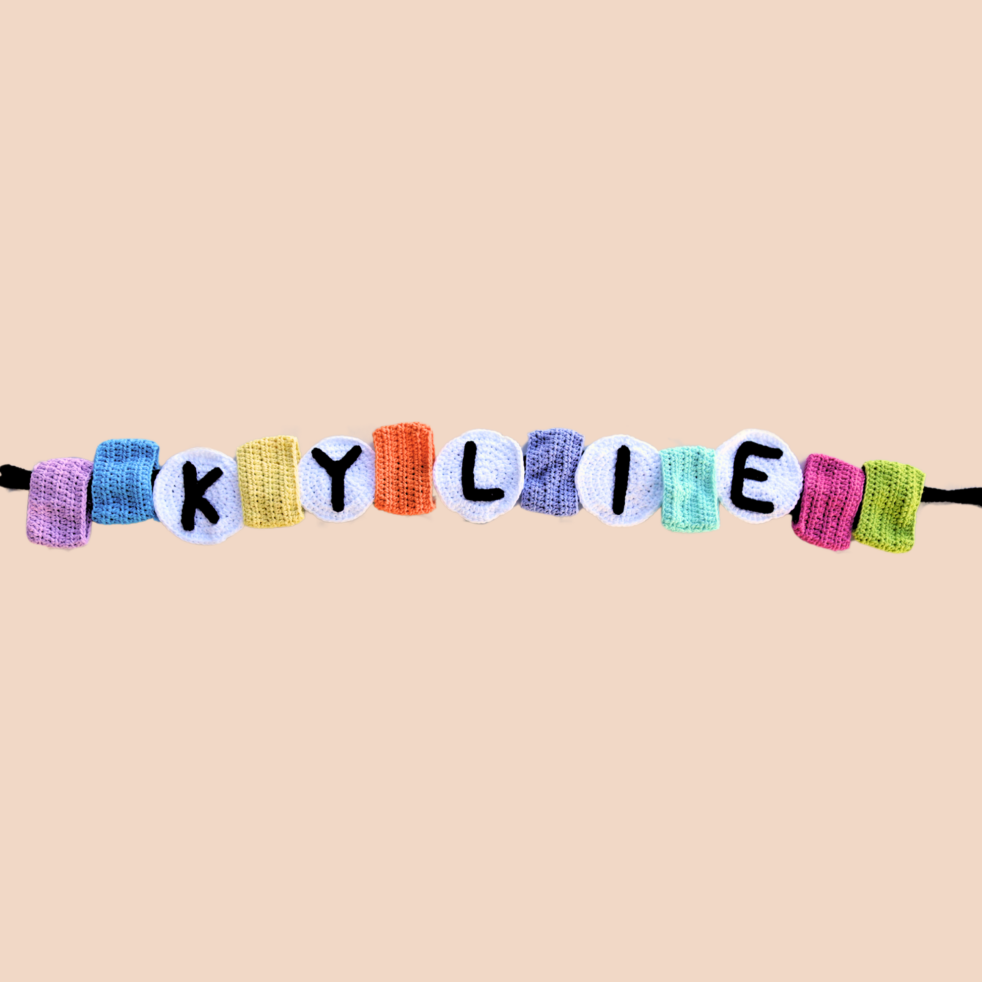 Build Your Own Bracelet Sign! Fully customizable, this adorable twist on a beaded friendship bracelet is a cute addition to your classroom, home, or vendor set up! Bright colorful "beads" can be placed between or around white and black letter "beads" for so many options! Handmade by crochet with 100% cotton yarn makes it durable and easy to clean! Hand wash only, lay flat to dry.