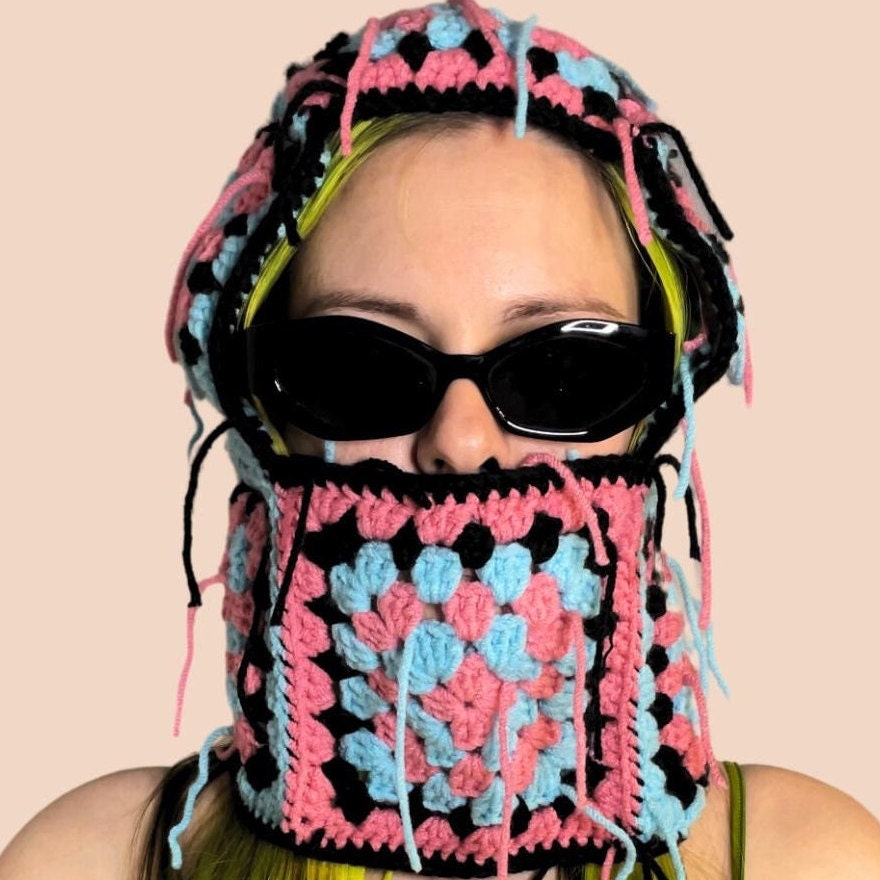 🦋The Violette Balaclava is a very fashionable choice, great for photoshoots and festivals. Granny Square Crochet Handmade Balaclava Ski Mask.