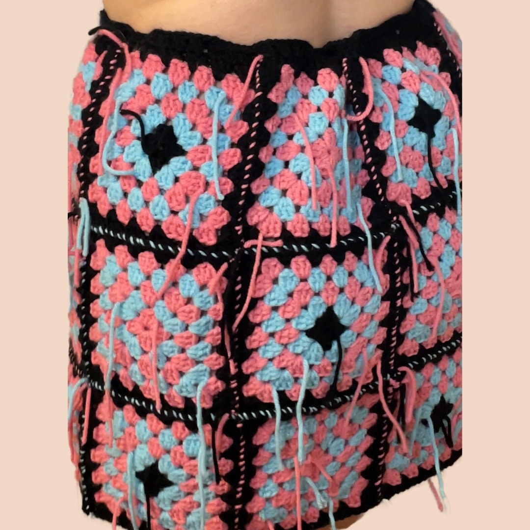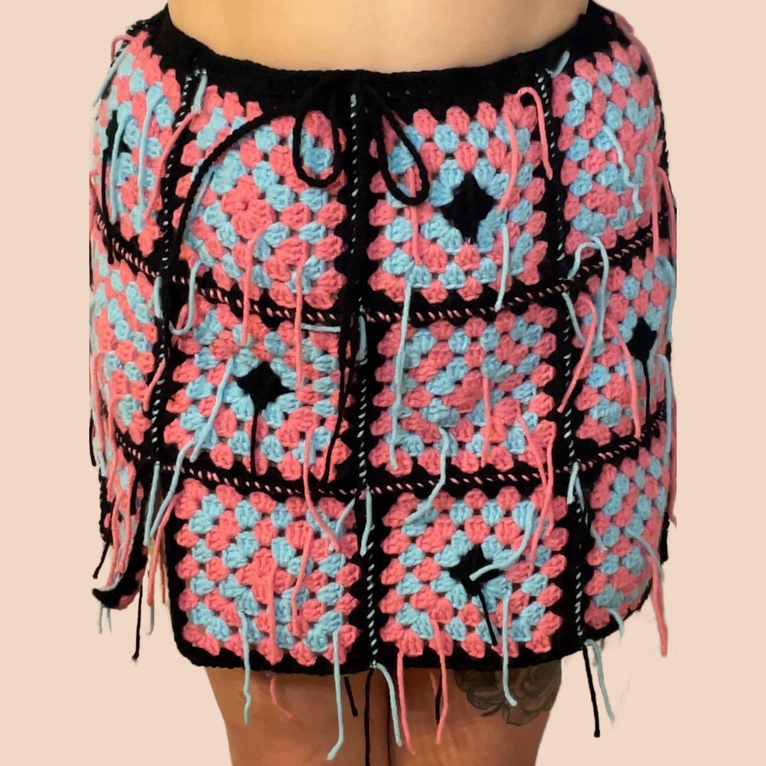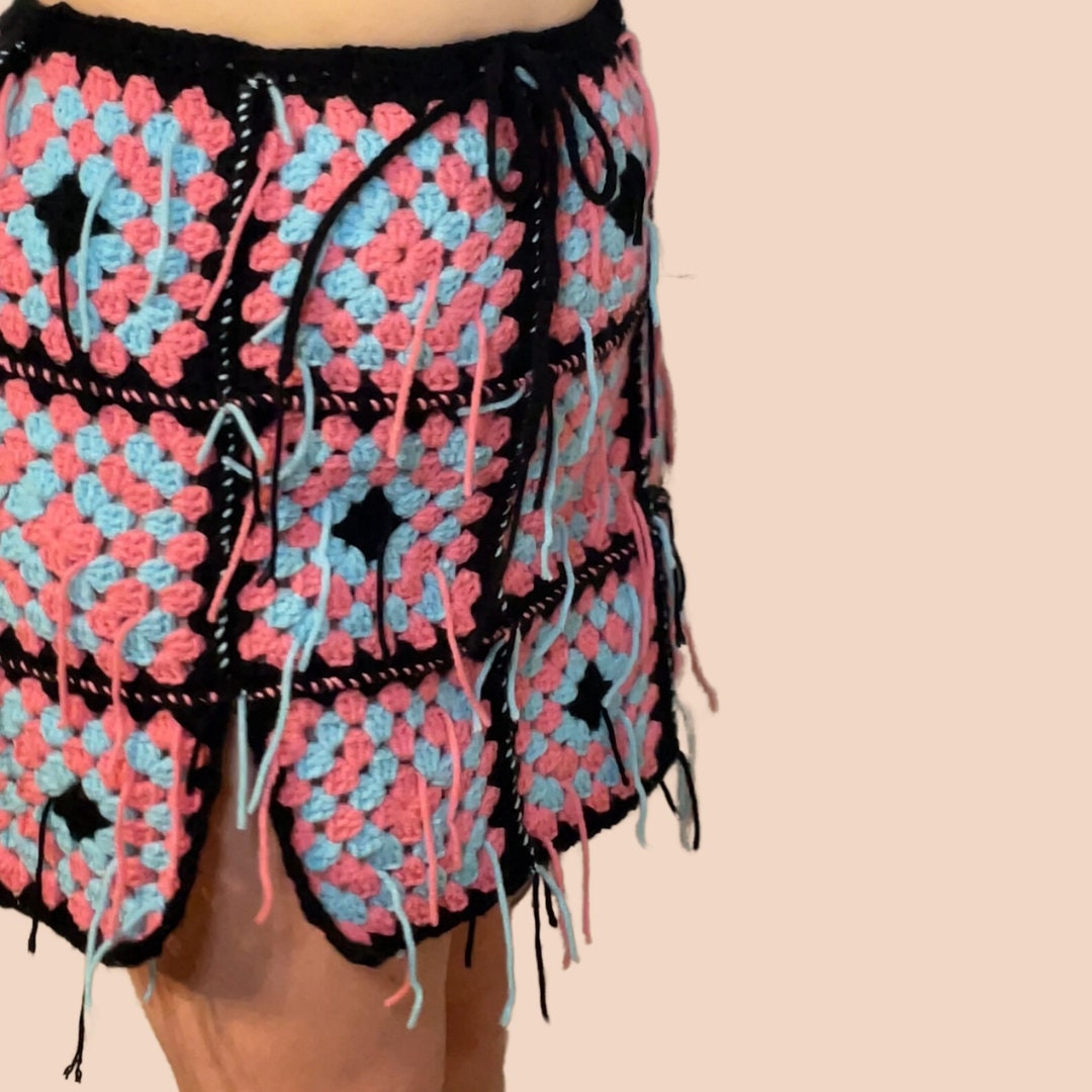 🦋The Eleanor Mini Skirt has a slit on the right leg and is secured with a drawstring crochet tie at the waist. The number one addition you need for your summer wardrobe. Perfect for festivals and clubbing! Granny Square Crochet Handmade Mini Skirt.