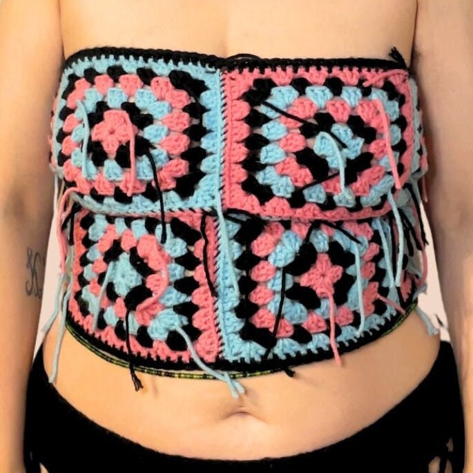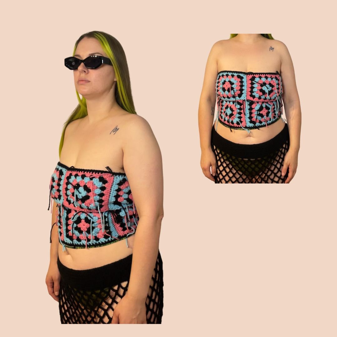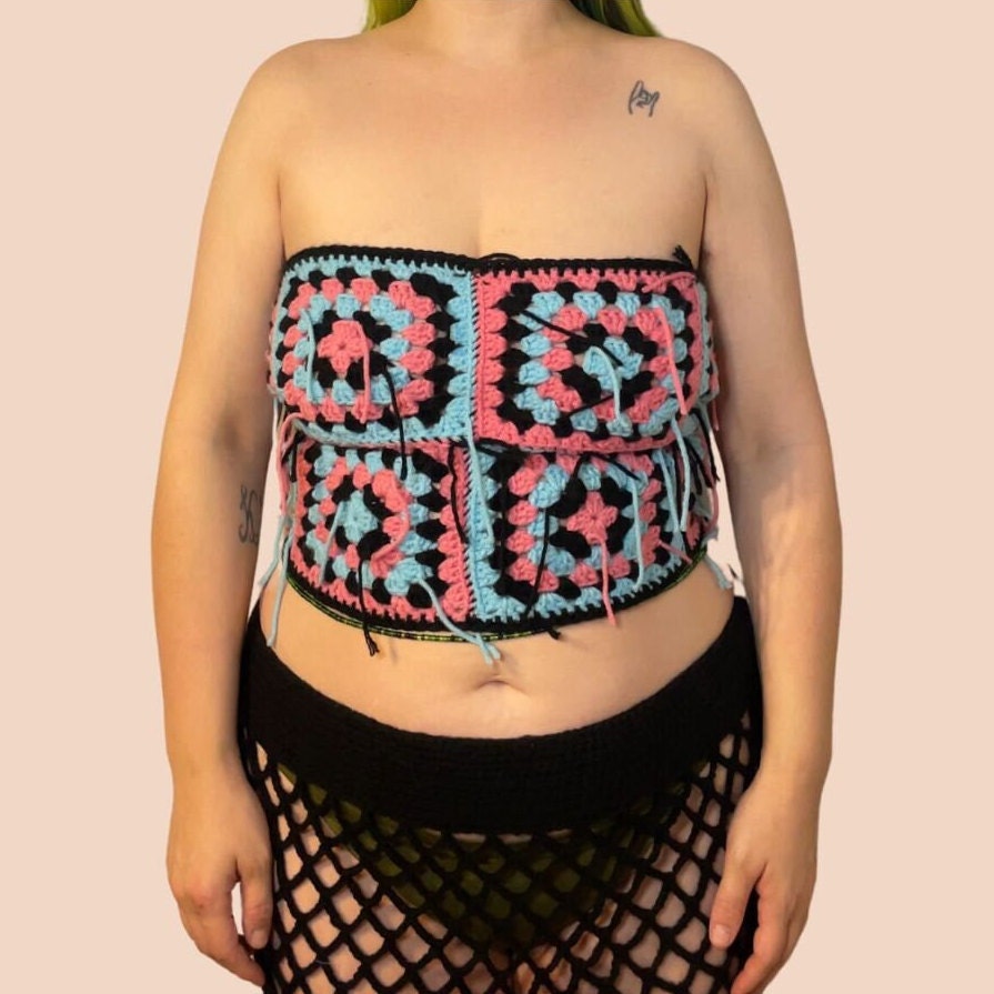 🦋The Barbara Tube Top has an open back and is secured with a criss cross crochet tie. This cute summer top is perfect for a day at the beach or a night out and is so versatile! Pairs great with our Fishnet Maxi Skirt. Granny Square Crochet Handmade Tube Top.