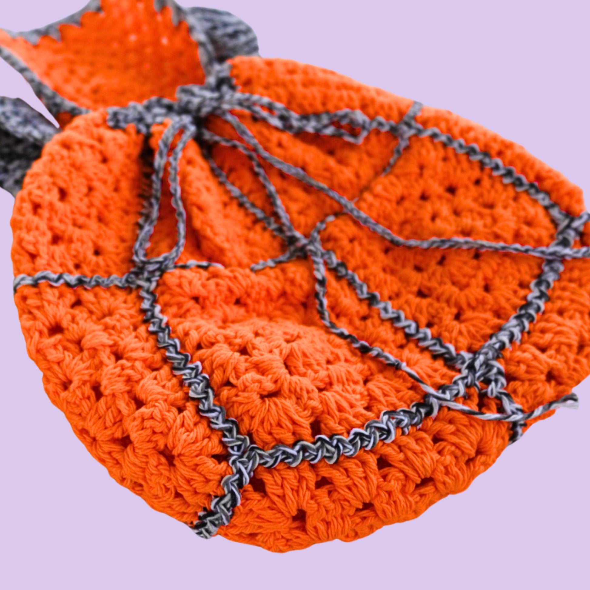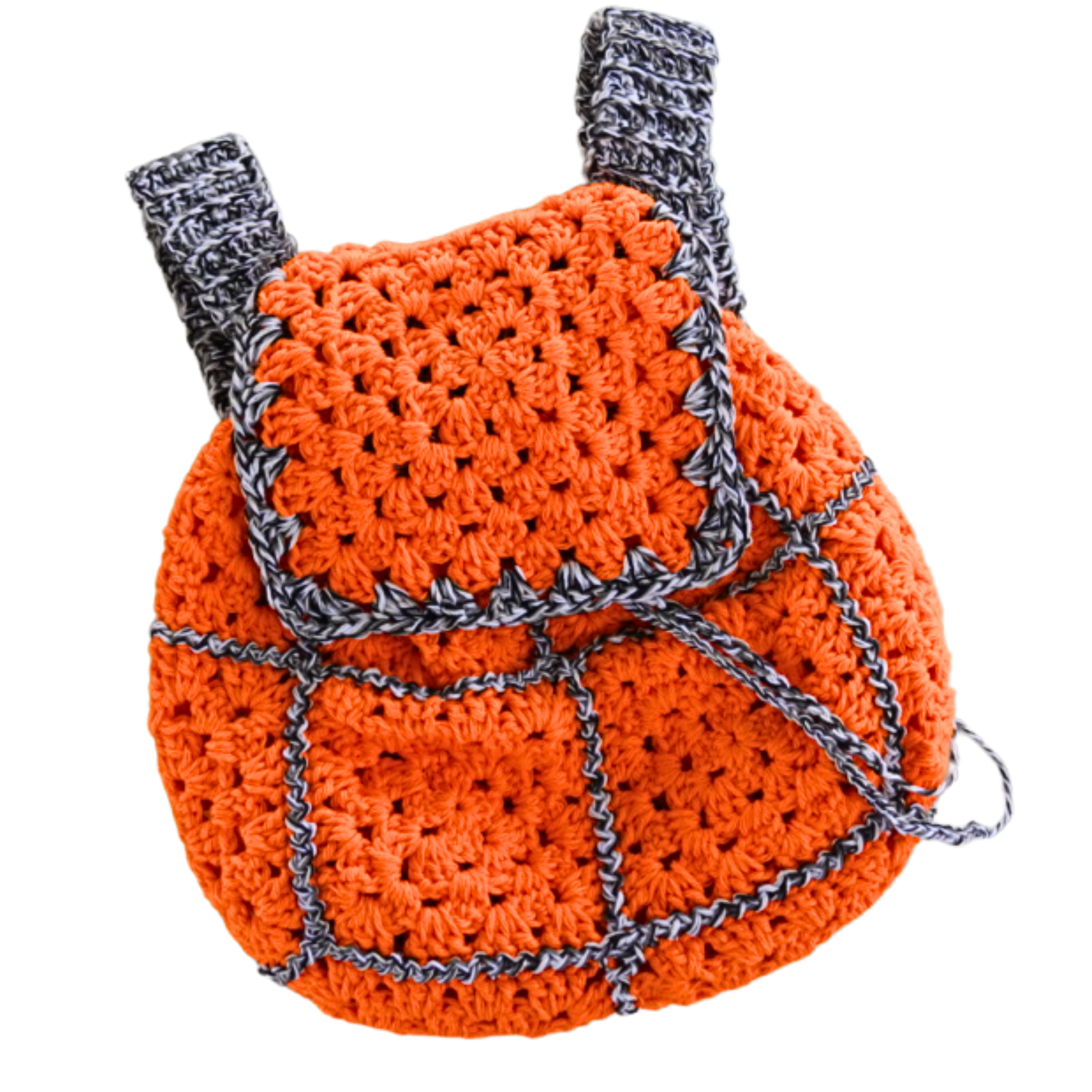 ✨Granny Square Mini Backpack measures roughly 12"T and 6"W, with a drawstring tie.